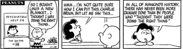 Charles Schulz explored some pretty depressing thought experiments in his comic strip Peanuts, disguising them with the adorable drawings of Charlie Brown and company. The strip could become as dark as the bleakest Greek tragedy. Consider Lucy pulling the football out of the way of Charlie Brown's kick: After 50 odd years of never kicking the ball, this simple gag more closely resembled the torture of Sisyphus -- doomed to push a rock uphill only to see it roll back down, again and again for all eternity.