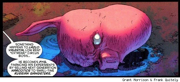 The following includes a major spoiler aoPage 1: I'll try not to totally step on Sims's excellent notes comparing this scene with Peter Milligan's now-seminal "Dark Knight/Dark City,"but the dialogue is taken verbatim from there. The setting: Jacob Stockman's farm and their devil-worship basement.