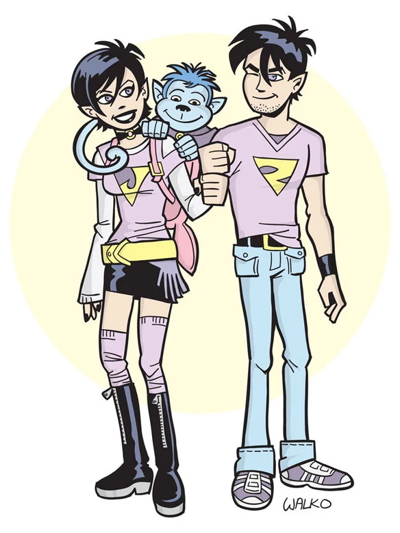 Walko's comic art, which resembles what you might expect superhero Archie comics drawn by Josh Howard to look like, can be checked out over on his deviantART page. Whether you love Hawk and Dove or have always wondered what Booster Gold would say if he found himself hitting on Fred Flintstone's daughter Pebbles and what Skeets would say over his shoulder, you should check his work out.