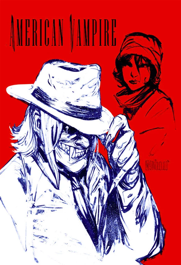 The Brazilan native can do the same for Wolverine and the Rolling Stones, who you'll also find over on his blog atSantolouco.WordPress.com. His figures can take on characteristics similar to Stuart Immonen's with long, clean lines and slightly exaggerated proportions, but often with the kind of theatrical caricatured faces that would be commonplace in a Sam Kieth book.