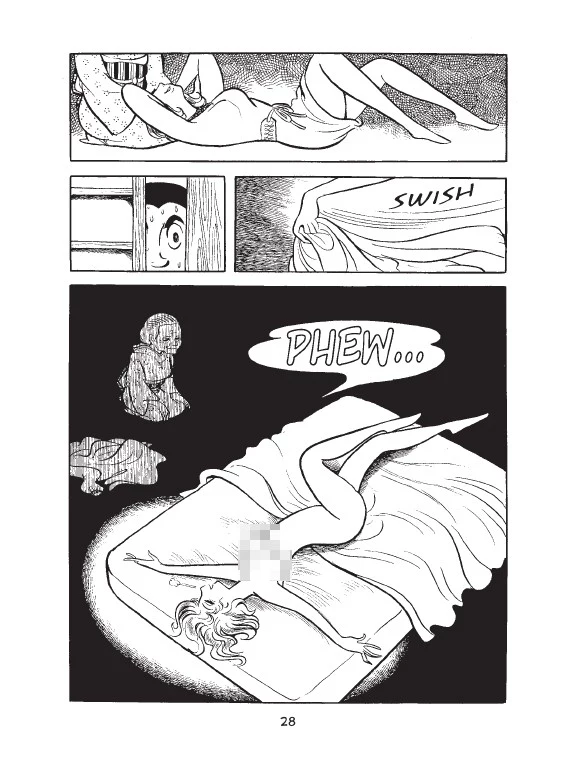 The Book of Human Insects is, as usual for Tezuka, a treat. His cartooning is wonderful, his writing relentlessly focused, and his plotting just that right balance of creepy and exciting. You don't cheer for Tomura, not by any means, but you definitely spend the book's 368 pages eager to see what she manages to do next. With a plot that pulls in romance, organized crime, political intrigue, war-time atrocities, exploitative sex (on the part of Tomura, at least), and some seriously creepy wax doll suckling, The Book of Human Insects is a wild read. Check out twenty-six spectacularly creepy preview pages below. While we have to blur the nudity, the print edition of the book is available without any censorship at all. Sorry!