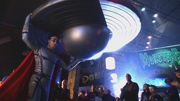 Chris: Seriously. This dude has an actual cosume. With a cape.